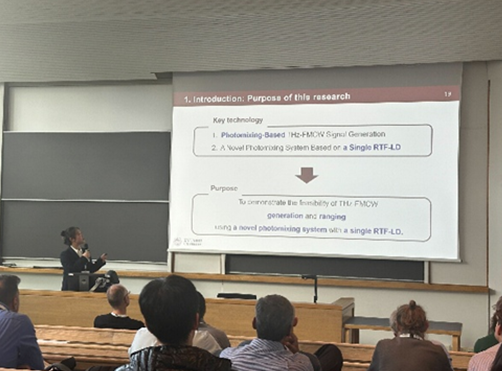 発表後の質疑応答の時間やコーヒーブレイクの際には、多くの質問やコメントをいただき、皆様の関心の高さや好評を実感することができました。また、本学会では自身の研究分野に近い発表を数多く聴講することができただけでなく、世界各国から参加された教授や研究者の方々と意見交換を行う貴重な機会にも恵まれました。これにより、自身の研究に対する理解がより深まっただけでなく、テラヘルツ波分野における最新の知見や技術動向を把握することができ、今後の研究活動に大いに活かせる有意義な経験となりました。