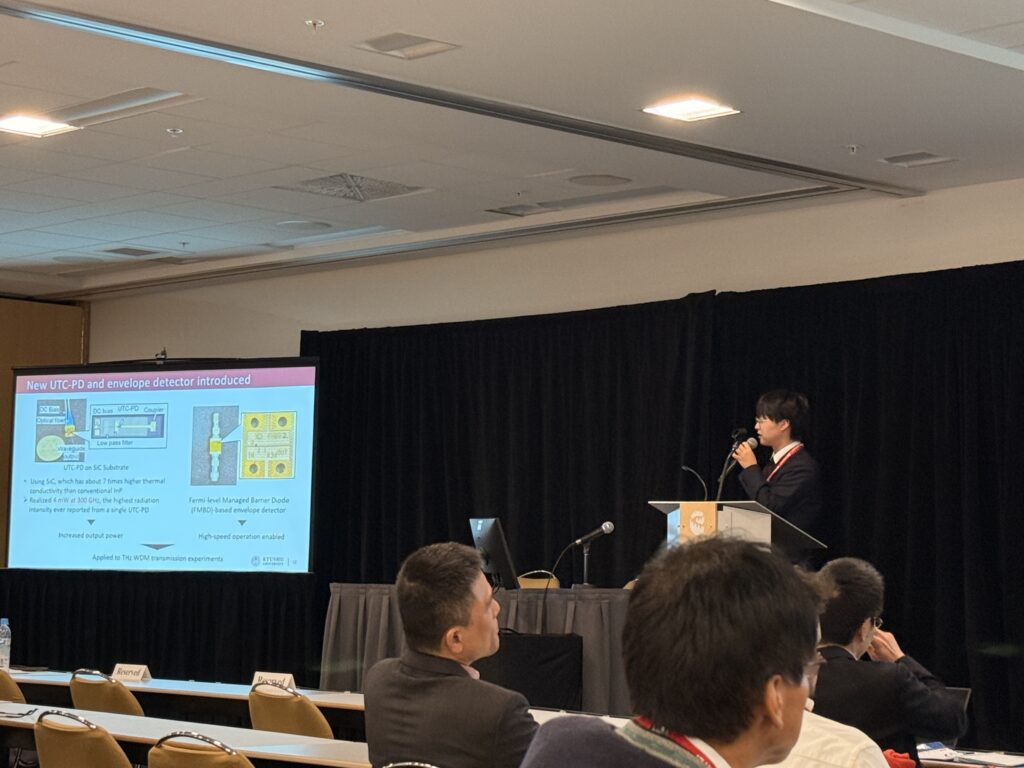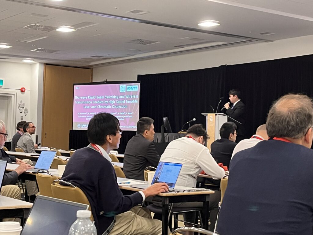 本研究室からは高出力のUTC-PDや高速ビームステアリング、周波数多重、安定した周波数掃引手法などについて報告しました。