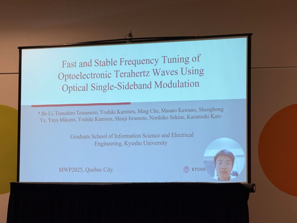 今回は2025年10月14日から17日にかけて、カナダ・ケベック市で開催された International Topical Meeting on Microwave Photonics (MWP 2025) に、紙浦、李くん、岩本くん、川野くんの計4件投稿し、研究成果を発表しました。