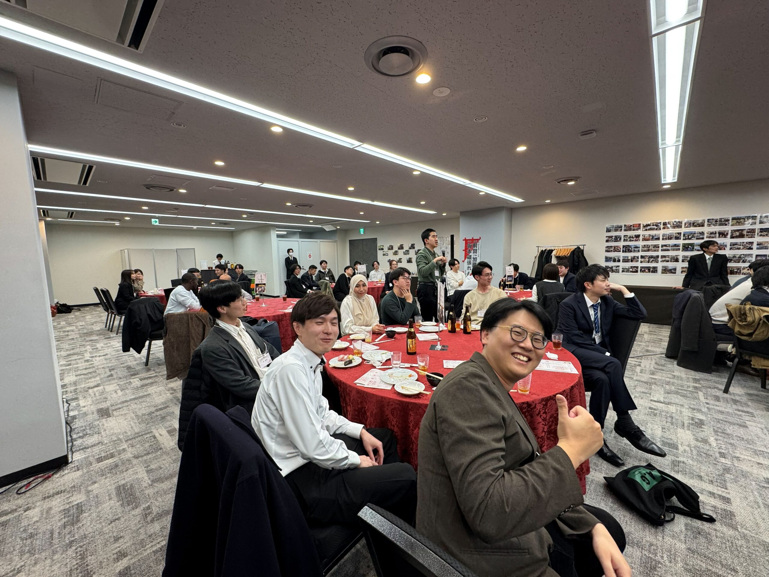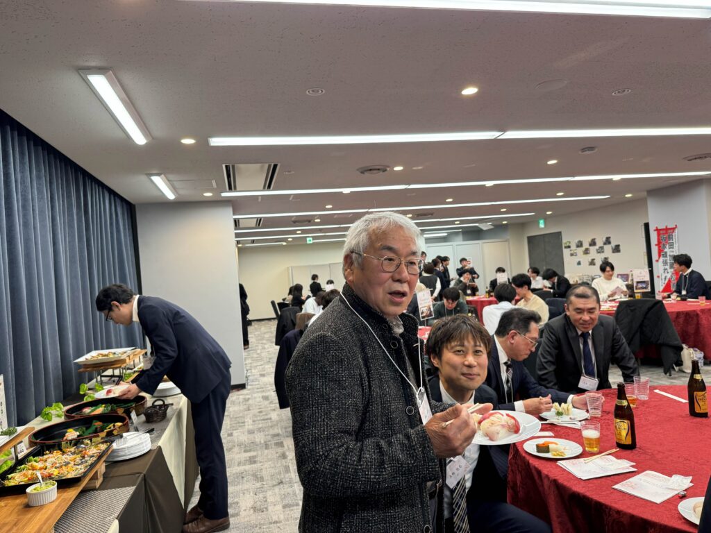 3月10日、TKP博多駅前カンファレンスセンターにて、加藤先生の最終講義ならびに退官記念式典が執り行われました。当日は、三上助教と私たち現役学生、そして加藤先生ご自身も加わって会場設営にあたりました。準備の最中には予期せぬトラブルもありましたが、全員で知恵を出し合って乗り越え、無事に定刻通りの開式を迎えることができました。会場には歴代の卒業生をはじめ、アカデミアや産業界を牽引する諸先生方も多数ご列席くださり、非常に華やかな雰囲気の中での幕開けとなりました。