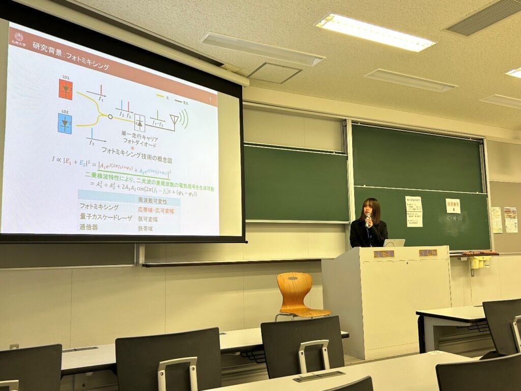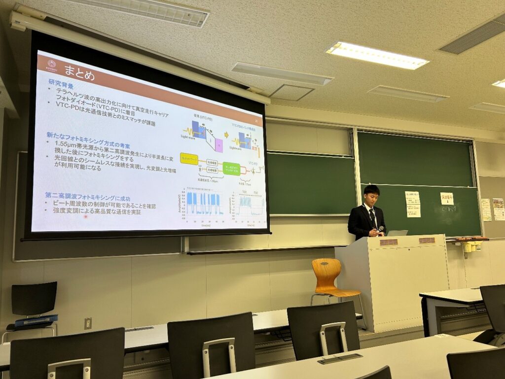 今回参加したセッションは「マイクロ波テラヘルツ光電子技術」であり、テラヘルツ波の分野が多くあったため、非常に勉強になる発表が多かったです。