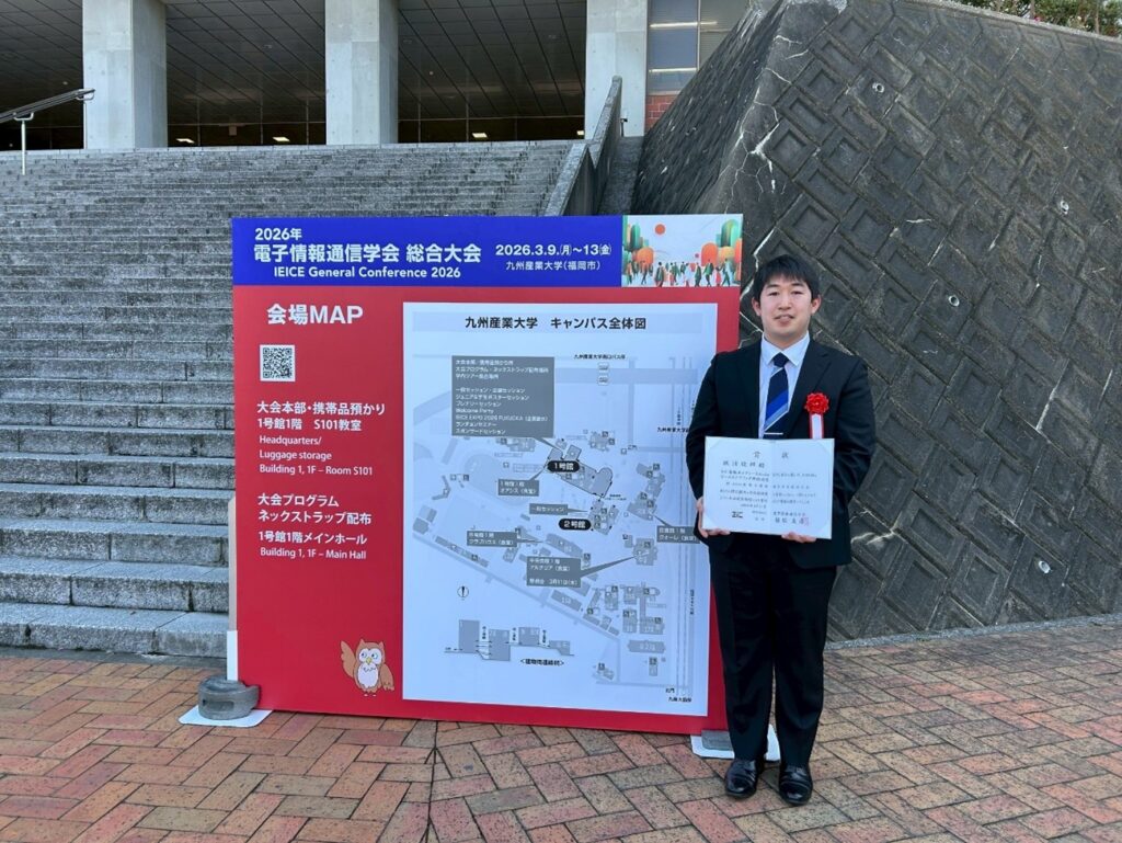 今回は福岡市東区の九州産業大学にて3/10~3/13に開催された電子情報通信学会 総合大会に参加してきましたので、その報告をさせていただきます。