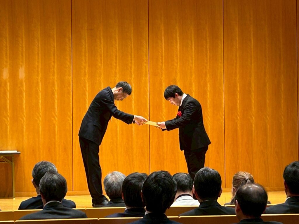 3月11日には懇親会が実施され、過去に本学会で受賞した紙浦さんは表彰を受けていました。さすがです!!